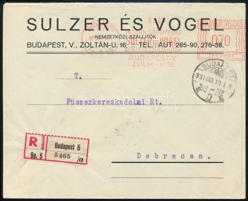 Beschreibung: 1931 Ajánlott levél gépi bérmentesítéssel / Registered cover