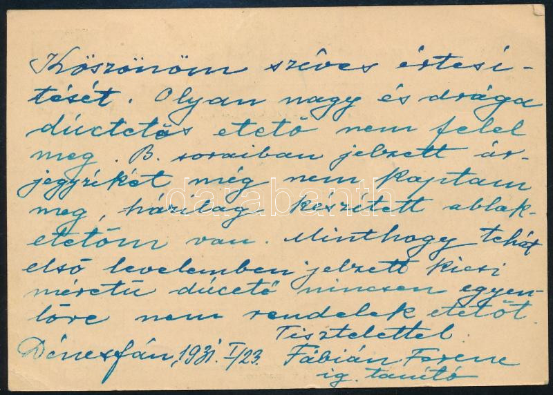 1931 Ajánlott levelezőlap 4 bélyeges kiegészítéssel "DÉNESFA / SO... https://www.darabanth.com/de/45-Gross-Auktion/45.1/Philatelie-und-Postgesichte-Ungarn-Online/Pengo-Periode-1926-1944~18880/1931-Ajanlott-levelezolap-4-belyeges-kiegeszitessel-DENESFA-SOPRON-VM-plus-KARASZ-posta~II3427028