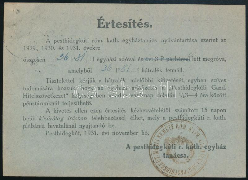 1931 Nyomtatvány 2f bérmentesítéssel Pesthidegkútról Budapestre, 16f p... https://www.darabanth.com/de/45-Gross-Auktion/45.1/Philatelie-und-Postgesichte-Ungarn-Online/Pengo-Periode-1926-1944~18880/1931-Nyomtatvany-2f-bermentesitessel-Pesthidegkutrol-Budapestre-16f-portoval-ellatva-Prin~II3439708