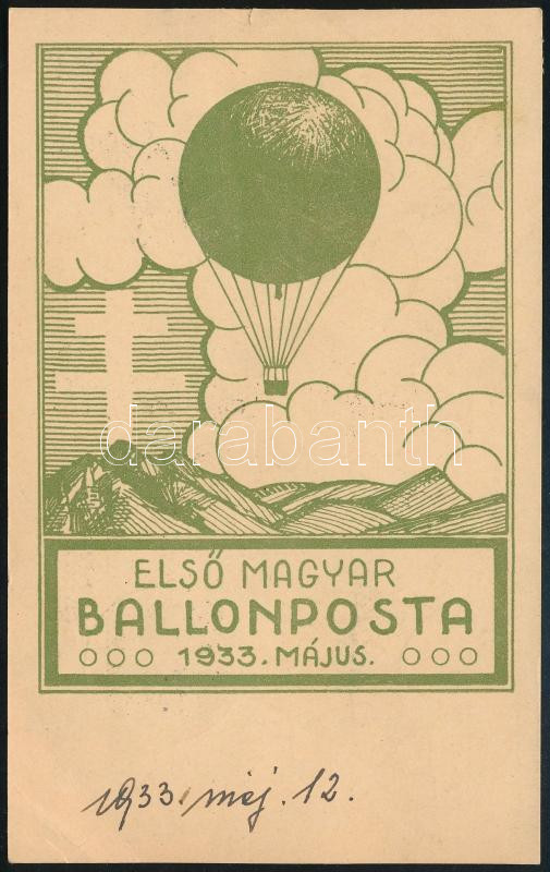1933 Ballonposta levelezőlap levélzáróval és alkalmi bélyegzéssel / Ba... https://www.darabanth.com/de/45-Gross-Auktion/45.1/Philatelie-und-Postgesichte-Ungarn-Online/Pengo-Periode-1926-1944~18880/1933-Ballonposta-levelezolap-levelzaroval-es-alkalmi-belyegzessel-Balloon-post-postcard~II3439003