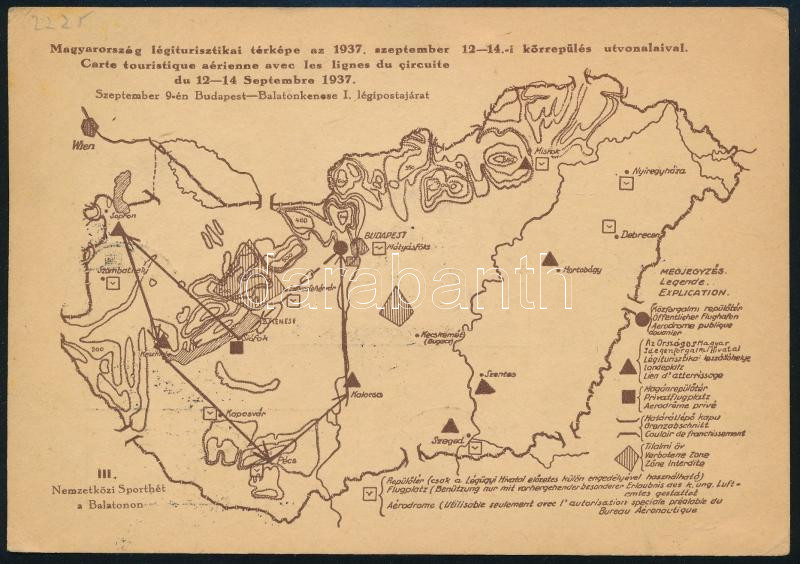1937 Légi képeslap Sporthét levélzáróval és alkalmi bélyegzéssel / Air... https://www.darabanth.com/de/45-Gross-Auktion/45.1/Philatelie-und-Postgesichte-Ungarn-Online/Pengo-Periode-1926-1944~18880/1937-Legi-kepeslap-Sporthet-levelzaroval-es-alkalmi-belyegzessel-Airmail-postcard-with-la~II3420538