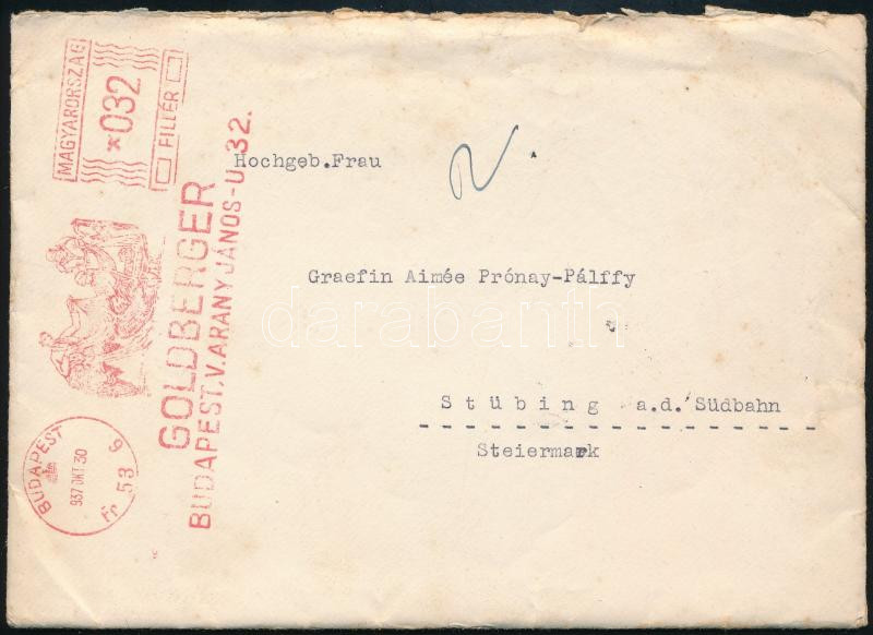 1937 Levél gépi bérmentesítéssel Ausztriába / Cover with francotyp pos... https://www.darabanth.com/de/45-Gross-Auktion/45.1/Philatelie-und-Postgesichte-Ungarn-Online/Pengo-Periode-1926-1944~18880/1937-Level-gepi-bermentesitessel-Ausztriaba-Cover-with-francotyp-postmark~II3439763