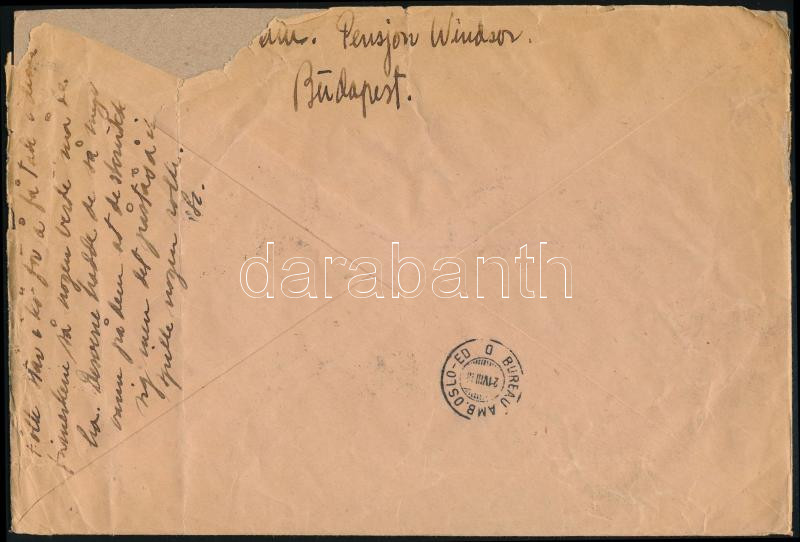 1938 Szent István blokk ajánlott légi levélen Norvégiába. Rendkívül ritka darab, köznapi állapotban / Mi 4 block on registered airmail cover to Norway. Very rare piece in average condition