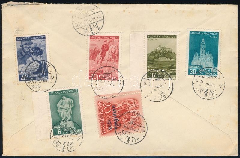 1939 Expressz levél 6 bélyeges bérmentesítéssel / Express cover with 6... https://www.darabanth.com/de/45-Gross-Auktion/45.1/Philatelie-und-Postgesichte-Ungarn-Online/Pengo-Periode-1926-1944~18880/1939-Expressz-level-6-belyeges-bermentesitessel-Express-cover-with-6-stamps-franking~II1770968