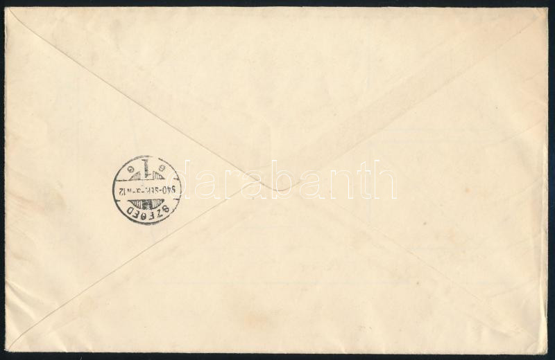 Beschreibung: 1940 Mátyás sor ajánlott levélen, "VI. NEMZETKÖZI SPORTHÉT A BALATONON" alkalmi bélyegzéssel / Mi 633-637 on registered cover