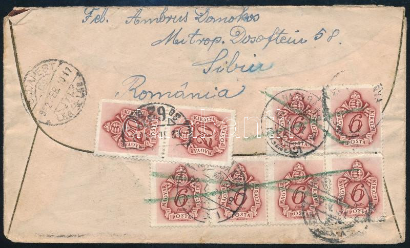 Beschreibung: 1942 Levél Nagybányára, majd Budapestre továbbküldve 10 db Portó bélyeggel, kézbesítési előjegyzéssel