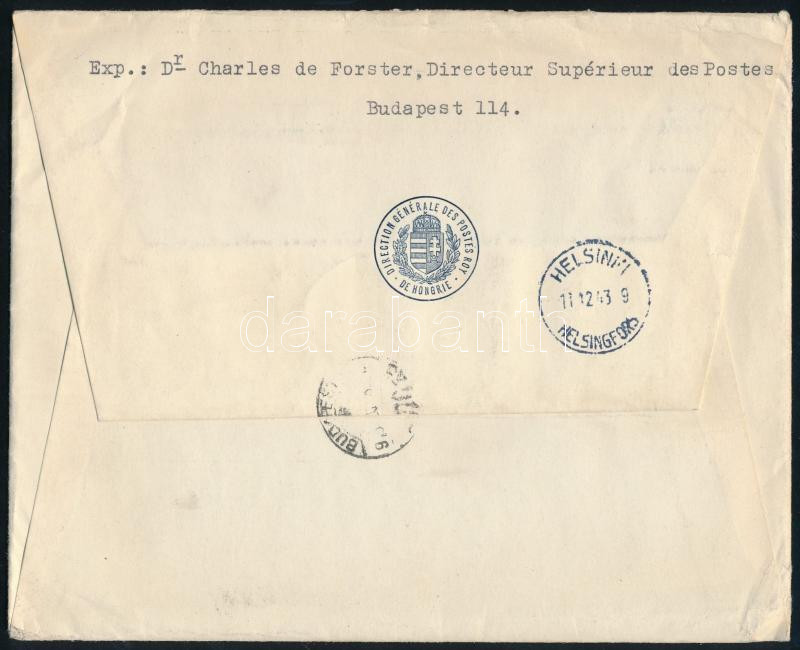 1943 Ajánlott levél Budapestről 6 db bélyeggel Helsinkibe https://www.darabanth.com/de/45-Gross-Auktion/45.1/Philatelie-und-Postgesichte-Ungarn-Online/Pengo-Periode-1926-1944~18880/1943-Ajanlott-level-Budapestrol-6-db-belyeggel-Helsinkibe~II3271386