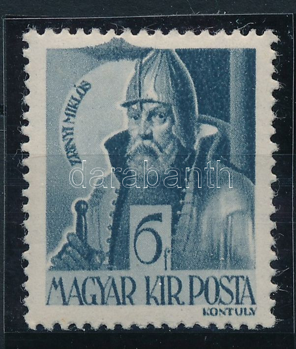1943 Hadvezérek 6f festékfolttal / Mi 710 with paint spot https://www.darabanth.com/de/45-Gross-Auktion/45.1/Philatelie-und-Postgesichte-Ungarn-Online/Pengo-Periode-1926-1944~18880/1943-Hadvezerek-6f-festekfolttal-Mi-710-with-paint-spot~II3437683