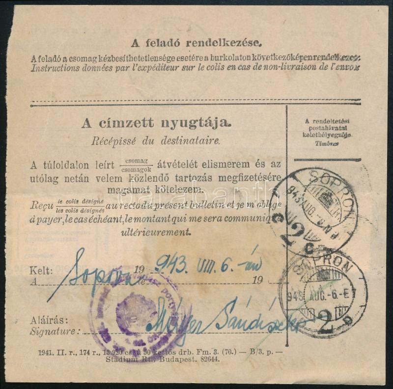 1943 Nyugta 3 bélyeggel / Receipt with 3 stamps https://www.darabanth.com/de/45-Gross-Auktion/45.1/Philatelie-und-Postgesichte-Ungarn-Online/Pengo-Periode-1926-1944~18880/1943-Nyugta-3-belyeggel-Receipt-with-3-stamps~II3436964