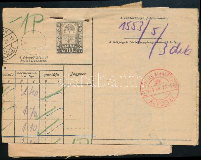 1943 Szállítójegyzék küldeménnyel készpénzes bérmentesítéssel "RÉ... https://www.darabanth.com/de/45-Gross-Auktion/45.1/Philatelie-und-Postgesichte-Ungarn-Online/Pengo-Periode-1926-1944~18880/1943-Szallitojegyzek-kuldemennyel-keszpenzes-bermentesitessel-REPCELAK-Parcel-list-w~II3444180