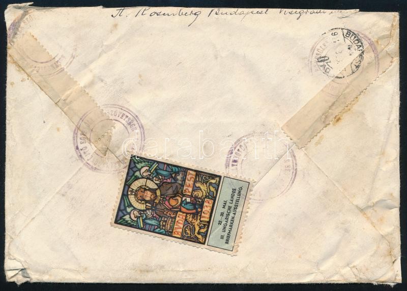1944 Cenzúrázott ajánlott levél Szent Margit 8 x 30f bérmentesítéssel Svédországba küldve / Censored registered cover with 8 x Mi 753 franking to Sweden