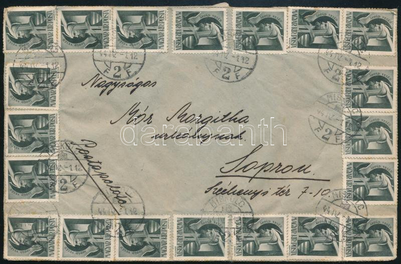 Beschreibung: 1944 Távolsági levél 20 db bélyeggel + 10 db bélyeggel bélyegzés nélkül / Domestic cover "MISKOLC" - Sopron