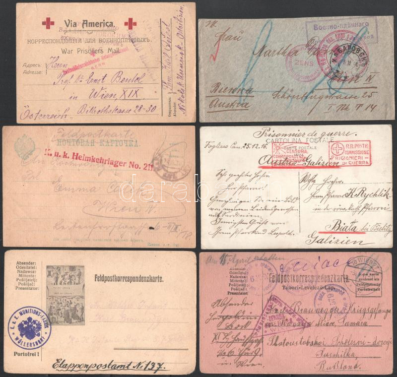 Beschreibung: 47 db I. világháborús hadifogoly küldemény + 6 db tábori / 47 POW postcards / covers from the WW I. + 6 field postcard