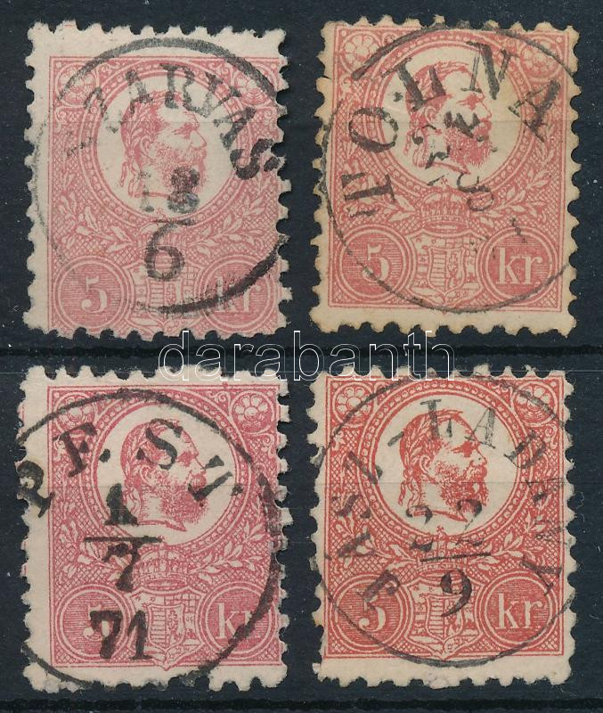Beschreibung: 1871 4 db Kőnyomat 5kr klf színárnyalatban (1 bélyegen szakadás) / 4 x Mi 3 in different colour variety (tear on 1 stamp)