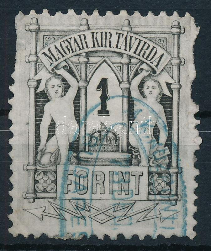 Beschreibung: 1874 Réznyomat Távírda 1Ft kék bélyegzéssel / blue cancellation (hiányzó fogak / missing perfs)