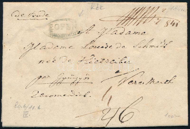 Beschreibung: 1841 Portós levél teljes tartalommal / Unpaid cover with full content, kék / blue "F.OFEN" (Gudlin 150 p)