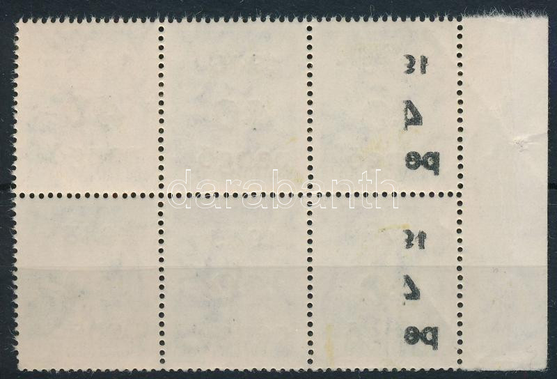 Beschreibung: 1945 Kisegítő 40P/8f ívszéli hatostömb részleges gépszínátnyomattal / Mi 817 with machine offset