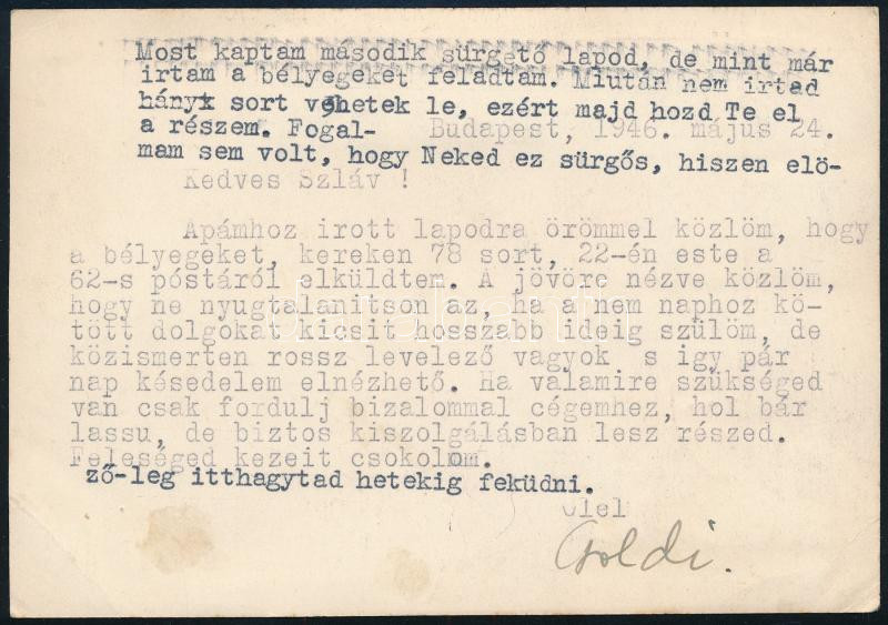 1946 (16. díjszabás) Levelezőlap 24 millió P bérmentesítéssel Budapest... https://www.darabanth.com/de/45-Gross-Auktion/45.1/Philatelie-und-Postgesichte-Ungarn-Online/Zweite-Inflationsperiode-1945-1946~18883/1946-16-dijszabas-Levelezolap-24-millio-P-bermentesitessel-Budapestrol-Pecsre-Postcard~II2730628