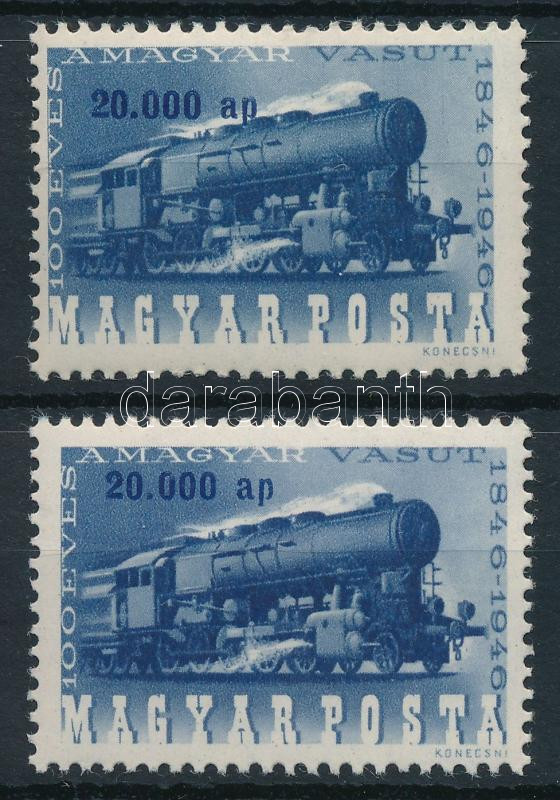 Beschreibung: 1946 Vasútjubileum 20 000 ap jelentősen elcsúszott értékszámmal + támpéldány / Mi 944 with shifted number