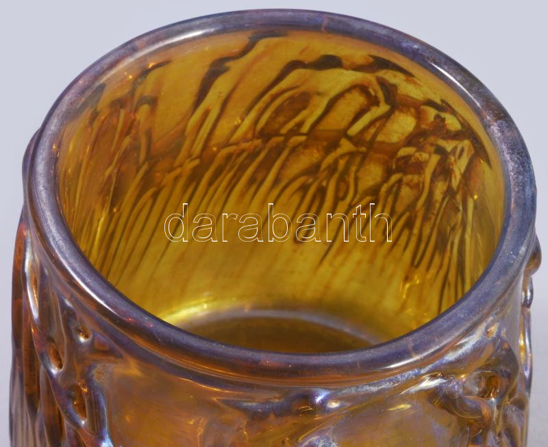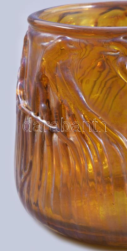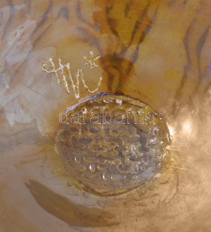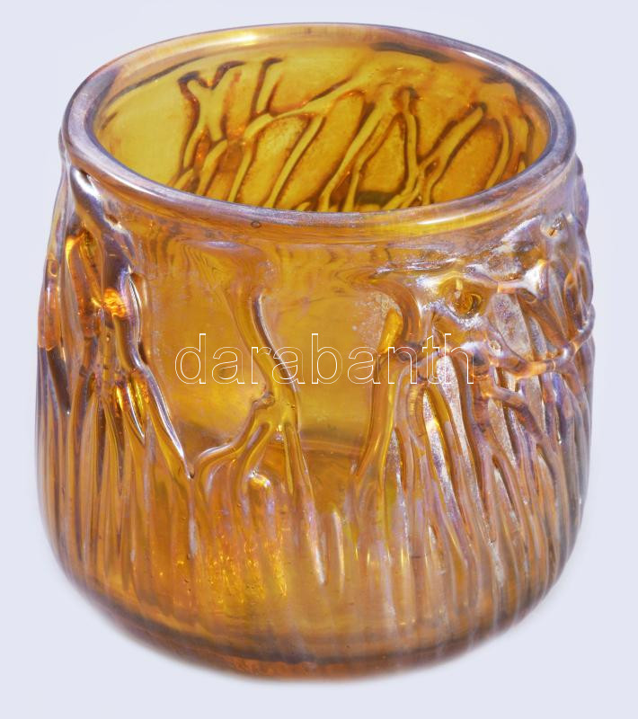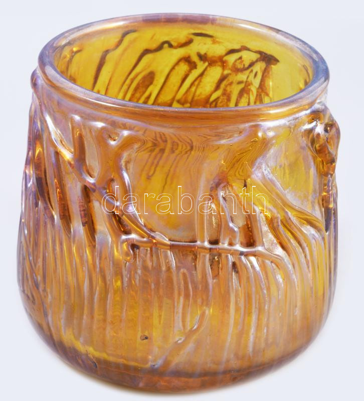 Horváth Márton (1941-2013): Díszváza "A véletlen firkái" sorozatból. cca 1980/85, irizáló felületű szakított üveg, jelzett, hibátlan, m: 12 cm /// Márton Horváth (1941-2013): Decorative Vase from the "Scribbles of Chance" series. c. 1980/85, iridescent fractured glass, signed, flawless, height: 12 cm.