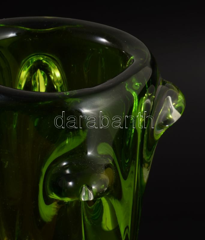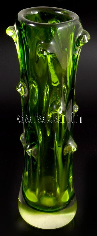 Ján Beranek zöld rücskös váza. Többrétegű, anyagában színezett, hibátlan m: 23 cm /// Ján Beranek green textured vase. Multilayered, colored in the mass, flawless, height: 23 cm.