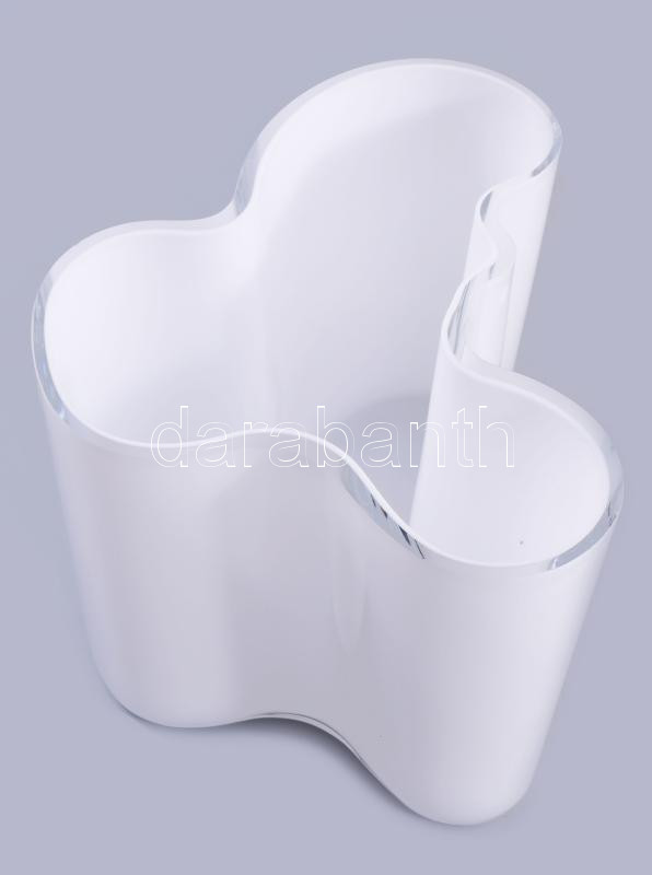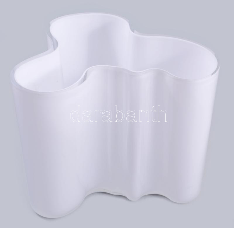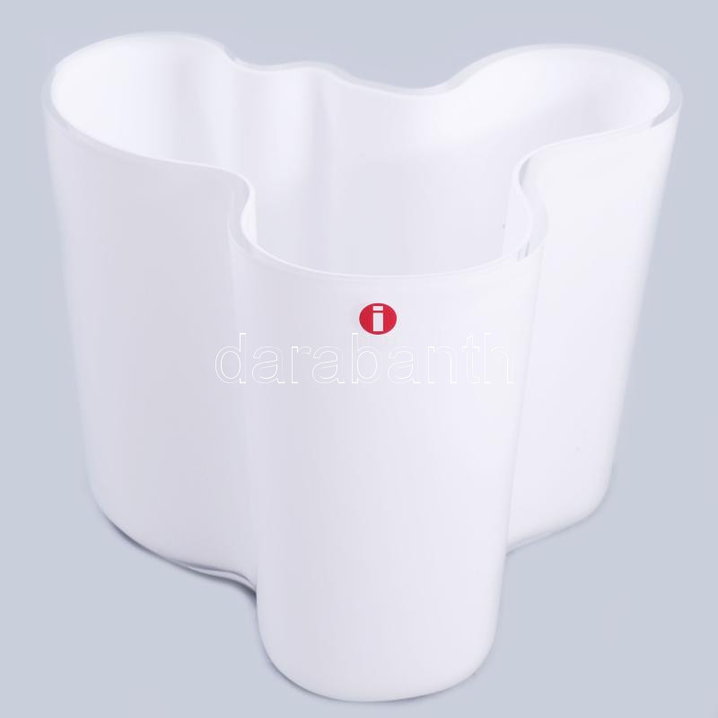"Savoy" váza. Finnország, Iittala gyár, Alvar Aalto (1898-1976) terve (1937), kétrétegű opálüveg, címkével jelzett, hibátlan, 15x13x12 cm /// "Savoy" vase. Finland, Iittala factory, design by Alvar Aalto (1898-1976) in 1937, double-layered opal glass, with label, flawless, 15×13×12 cm