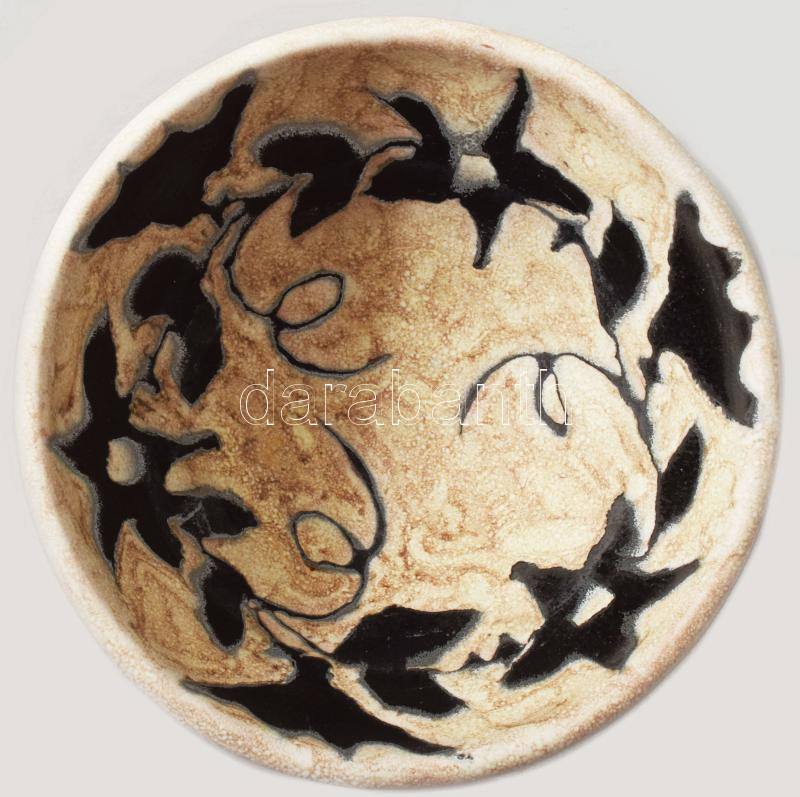 Beschreibung: Gorka Géza (1894-1971): Leveles tálka, mázas kerámia (Nógrádverőce), jelzett, hibátlan d: 15 cm