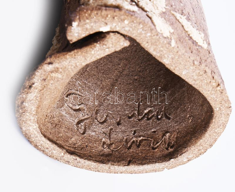 Gorka Lívia (1925-2011): Gesztenyeszedő. Kézzel formázott samottos kerámia, belül jelzett: masszába karcolt Gorka Lívia. hibátlan, m: 21 cm /// Lívia Gorka (1925-2011): Chestnut Picker. Hand-shaped chamotte ceramic, inscribed inside: incised "Lívia Gorka." In perfect condition, height: 21 cm.