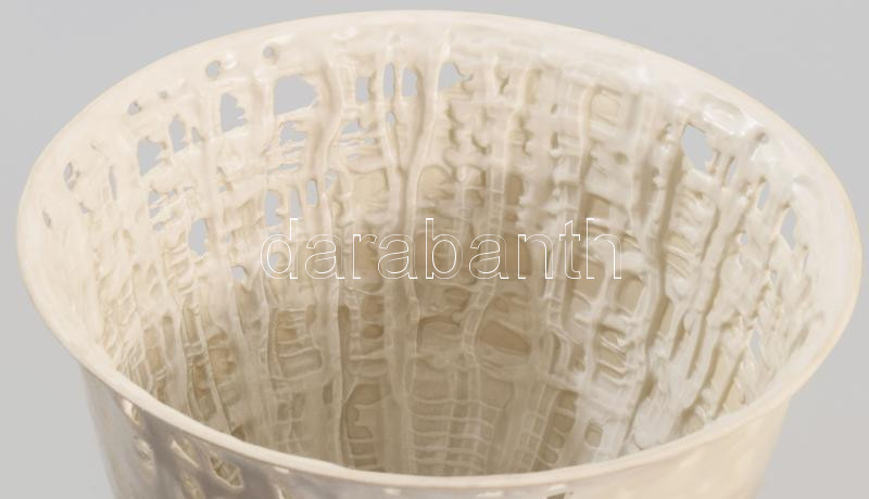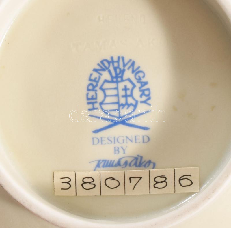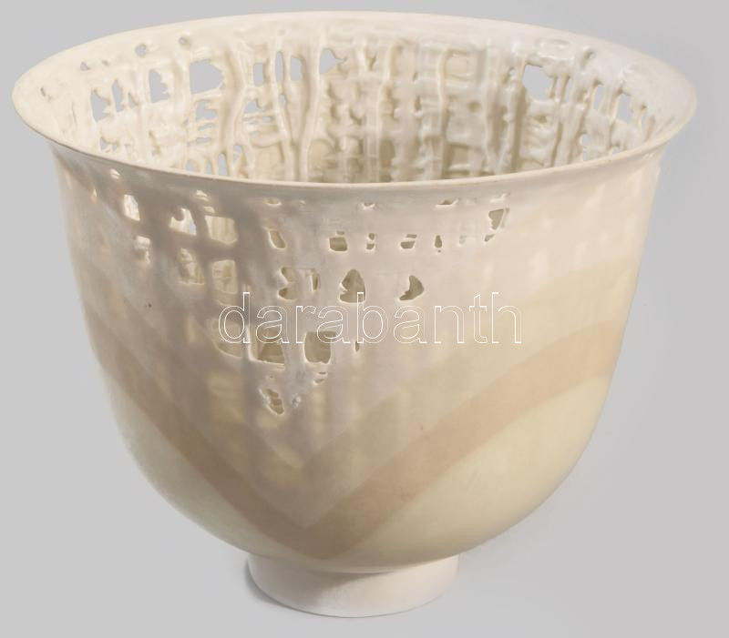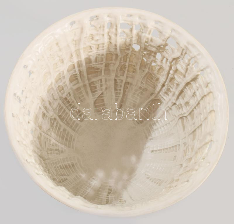 Herendi díszváza. Design: Tamás Ákos (1954-). Belül cseppkőszerűen csorgatott mintázattal, áttörésekkel, kívül pasztell csíkozással. Kézzel festett, jelzett, hibátlan, m: 14 cm, d: 17 cm