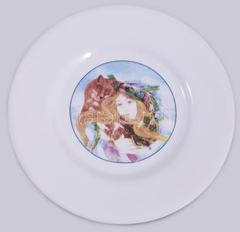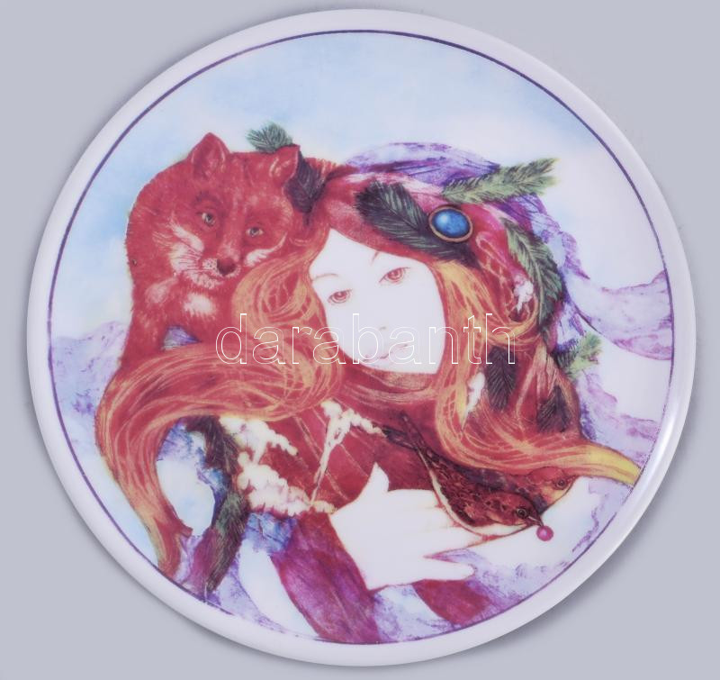 Hollóházi Manufaktúra, Faragó Miklós (1947- ) designer: "Le Quattro Staggioni" - Négy évszak minta 4 darab kísérleti darabja, bonbonier és 3 darab dísztál. Jelzett, hibátlan, d: 20,5 cm alatt /// Hollóháza Manufactory, Miklós Faragó (1947-) designer: "Le Quattro Stagioni" - Four Seasons pattern, 4 experimental pieces, comprising a bonbonniere and 3 decorative plates. Marked, flawless, diameter: under 20.5 cm.