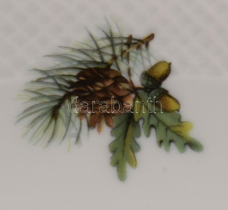 Beschreibung: Hollóházi kosmintás asztalközép kínáló. Kísérleti darab! Jelzett, minimális aranykopással, 26x26 cm /// Hollóházi sheepskin-patterned table centerpiece dish. Experimental piece! Signed, with minimal gold wear, 26 × 26 cm.