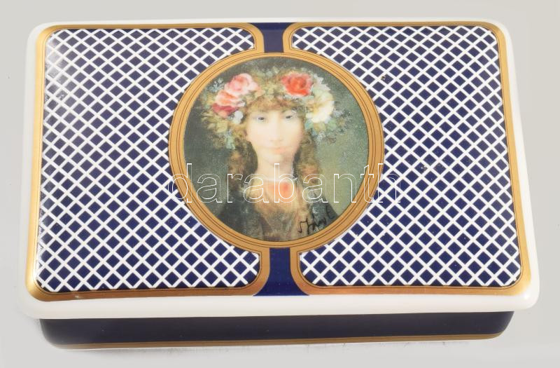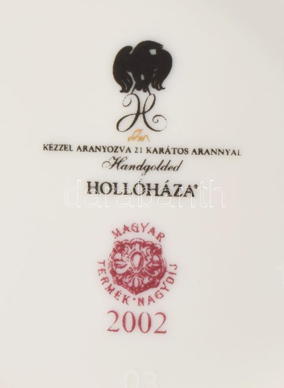 Hollóházi váza és bonbonier Szász Endre által tervezett ritka mintával díszítve, 21 karátos arannyal aranyozva, jelzett, hibátlan, m: 19,5 cm, 14x9 cm /// Hollóháza vase and bonbonniere, decorated with a rare pattern designed by Endre Szász, gilded with 21 karat gold, marked, flawless, h: 19.5 cm, 14x9 cm