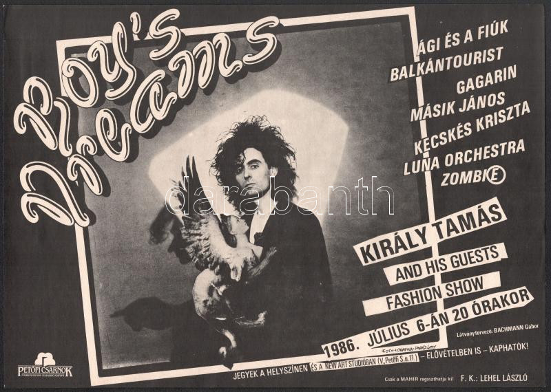 1986 Paraszkay György (1954- ): Boy's Dreams, Király Tamás és vendégeinek divatbemutatója, Petőfi Csarnok, 1986. júl. 6., plakát, ofszet, papír, 28x39,5 cm