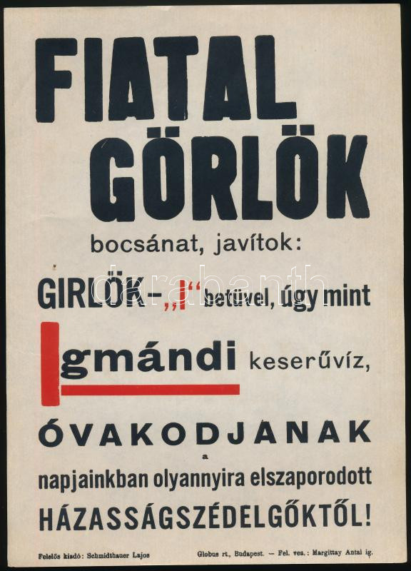 "Fiatal Görlök (...)", Igmándi keserűvíz kisplakát, papír, G... https://www.darabanth.com/de/45-Gross-Auktion/45.1/Poster/Poster~19003/Fiatal-Gorlok-Igmandi-keseruviz-kisplakat-papir-Globus-Nyomda-Bp-24C39717-cm~II3447156