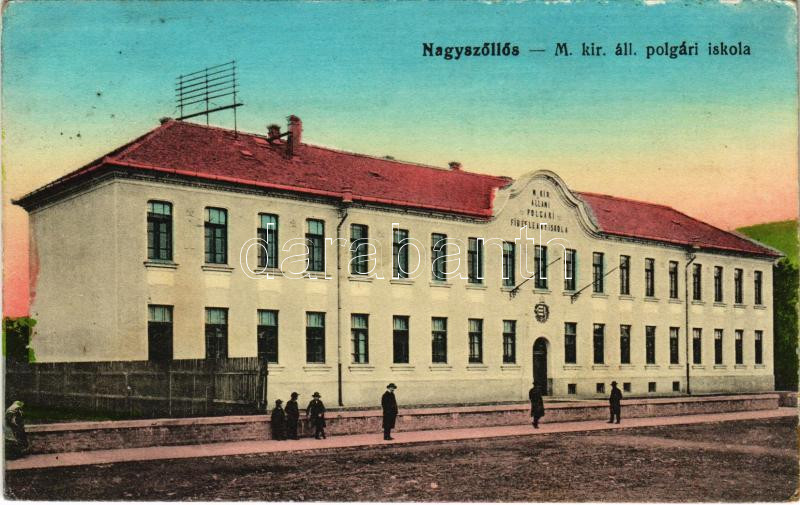 Beschreibung: 1921 Nagyszőlős, Nagyszőllős, Vynohradiv (Vinohragyiv), Sevljus, Sevlus; M. kir. állami polgári iskola. Deutsch J. kiadása / school (EK)