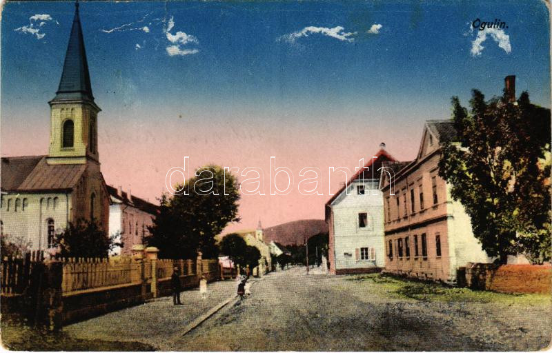 1914 Ogulin, utca, templom / street view, church (r) https://www.darabanth.com/de/450-Fernauktion/450.0/Ansichtskarten/Kroatien~1500012/1914-Ogulin-utca-templom-street-view-church-r~II2964612