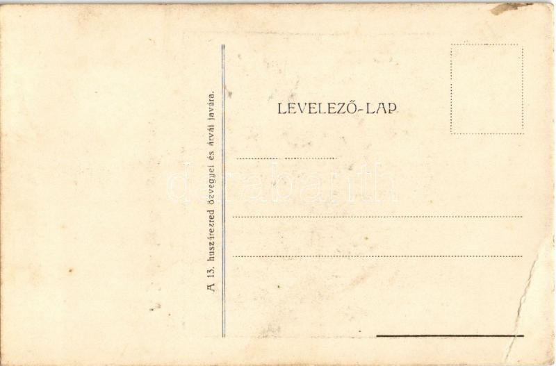 A Jászkunhuszárok gépfegyverei munkában. A 13. huszárezred özvegyei és... https://www.darabanth.com/de/450-Fernauktion/450.0/Ansichtskarten/Militaria~1500057/A-Jaszkunhuszarok-gepfegyverei-munkaban-A-13-huszarezred-ozvegyei-es-arvai-javara-WWI-~II2993067