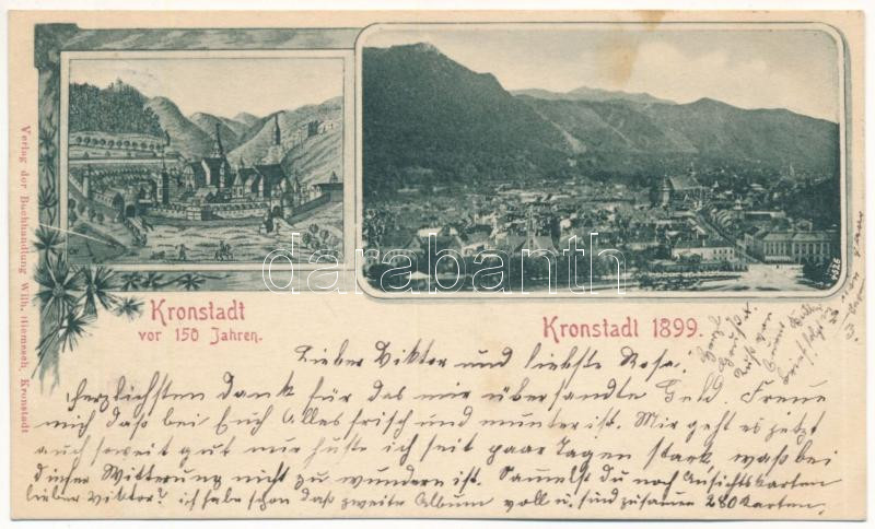 1899 (Vorläufer) Brassó, Kronstadt, Brasov; 150 évvel ezelőtt. Wilh. H... https://www.darabanth.com/de/450-Fernauktion/450.0/Ansichtskarten/Siebenburgen~1500009/1899-Vorlaufer-Brasso-Kronstadt-Brasov-150-evvel-ezelott-Wilh-Hiemesch-15-years-ago-Ar~II2962312