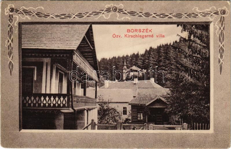 Borszék, Borsec; Özv. Kirschlegerné villa. Art Nouveau https://www.darabanth.com/de/450-Fernauktion/450.0/Ansichtskarten/Siebenburgen~1500009/Borszek-Borsec-Ozv-Kirschlegerne-villa-Art-Nouveau~II2990419