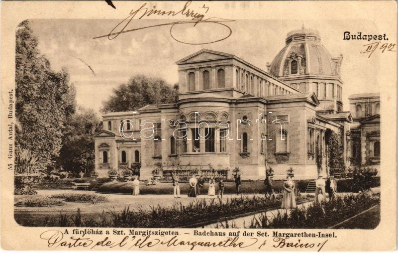 1902 Budapest XIII. Margitszigeti fürdőház. Ganz Antal 55. (EK) https://www.darabanth.com/de/450-Fernauktion/450.0/Ansichtskarten/Ungarn~1500008/1902-Budapest-XIII-Margitszigeti-furdohaz-Ganz-Antal-55-EK~II2990731