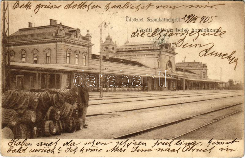 1905 Szombathely, Vasúti indóház belső homlokzata, kosarak. Steiner te... https://www.darabanth.com/de/450-Fernauktion/450.0/Ansichtskarten/Ungarn~1500008/1905-Szombathely-Vasuti-indohaz-belso-homlokzata-kosarak-Steiner-testverek-kiadasa-Rb~II2989706