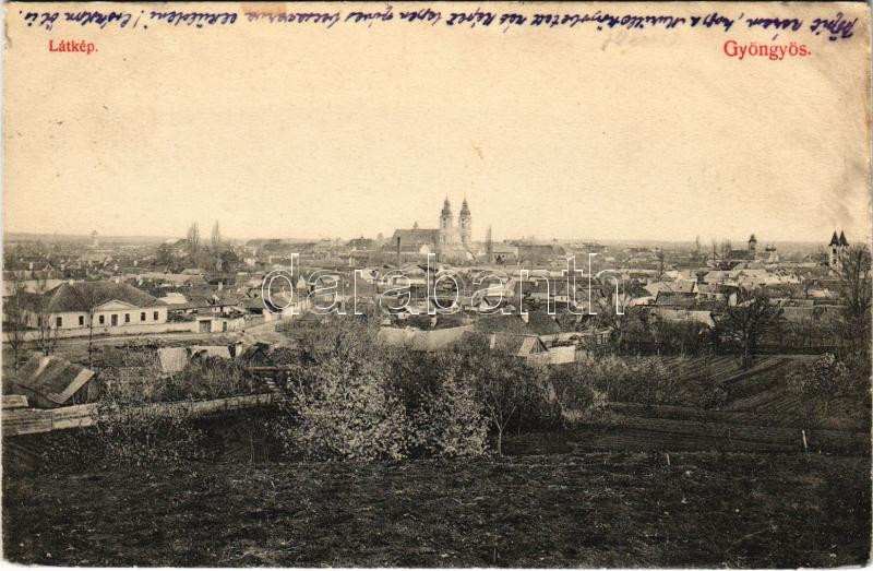 1910 Gyöngyös, látkép. Bendl Károly kiadása (ázott / wet damage) https://www.darabanth.com/de/450-Fernauktion/450.0/Ansichtskarten/Ungarn~1500008/1910-Gyongyos-latkep-Bendl-Karoly-kiadasa-azott-wet-damage~II2989437