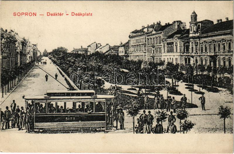 1912 Sopron, Deák tér, S.V.E.V. villamos. Blum Náthán kiadása https://www.darabanth.com/de/450-Fernauktion/450.0/Ansichtskarten/Ungarn~1500008/1912-Sopron-Deak-ter-SVEV-villamos-Blum-Nathan-kiadasa~II2988348