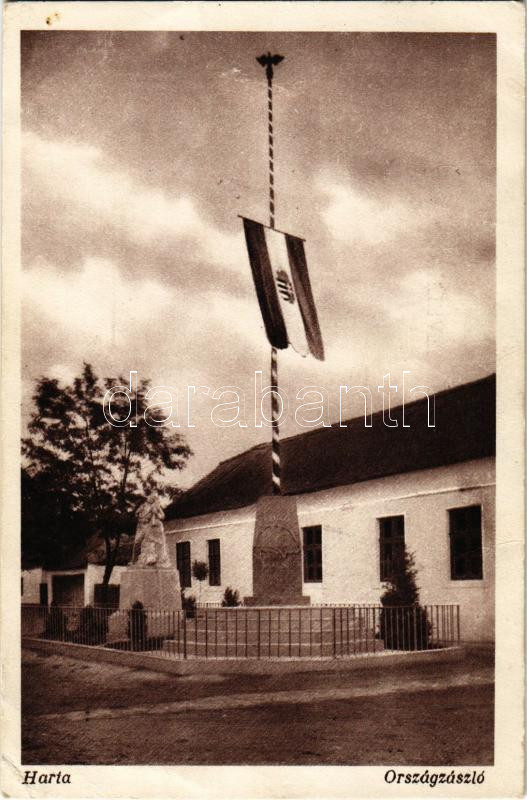 1937 Harta, Országzászló. Schmell Sándor kiadása (EK) https://www.darabanth.com/de/450-Fernauktion/450.0/Ansichtskarten/Ungarn~1500008/1937-Harta-Orszagzaszlo-Schmell-Sandor-kiadasa-EK~II2986424