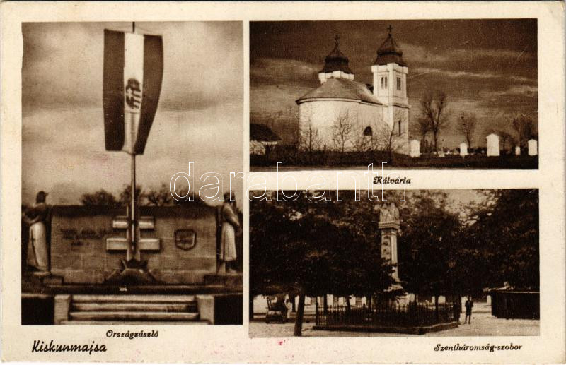 Kiskunmajsa, Országzászló, Kálvária, Szentháromság szobor (EK) https://www.darabanth.com/de/450-Fernauktion/450.0/Ansichtskarten/Ungarn~1500008/Kiskunmajsa-Orszagzaszlo-Kalvaria-Szentharomsag-szobor-EK~II2961489