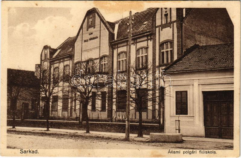 Sarkad, Állami polgári fiúiskola. Gettler Andor kiadása (fl) https://www.darabanth.com/de/450-Fernauktion/450.0/Ansichtskarten/Ungarn~1500008/Sarkad-Allami-polgari-fiuiskola-Gettler-Andor-kiadasa-fl~II2991967