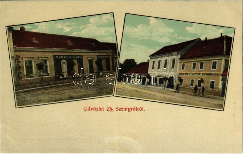 Beschreibung: Zalaszentgrót, Szálloda a magyar koronához, Németh Emil üzlete és saját kiadása