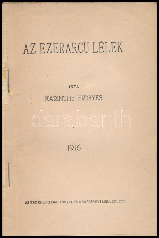 Karinthy Frigyes: Az ezerarcu lélek. Az Érdekes Ujság ingyenes karácso... https://www.darabanth.com/de/450-Fernauktion/450.0/Bucher/Bucher-Andere-kuriositaten~2000028/Karinthy-Frigyes-Az-ezerarcu-lelek-Az-Erdekes-Ujsag-ingyenes-karacsonyi-melleklete-A-boritC3~II2987906