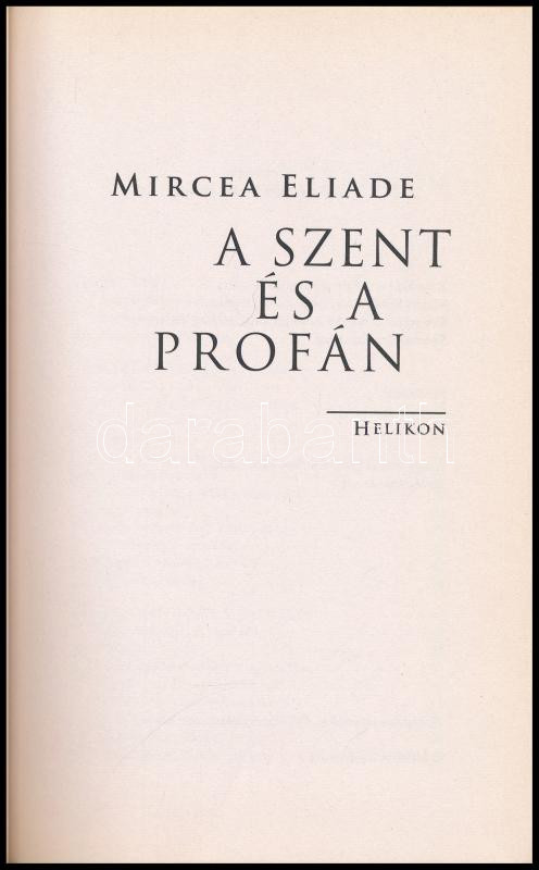 Mircea Eliade: A szent és profán. Ford.: Berényi Gábor. Bp., 2014,Heli... https://www.darabanth.com/de/450-Fernauktion/450.0/Bucher/Bucher-Andere-kuriositaten~2000028/Mircea-Eliade-A-szent-es-profan-Ford-Berenyi-Gabor-Bp-2014-Helikon-Kiadoi-kartonalt-p~II2989781