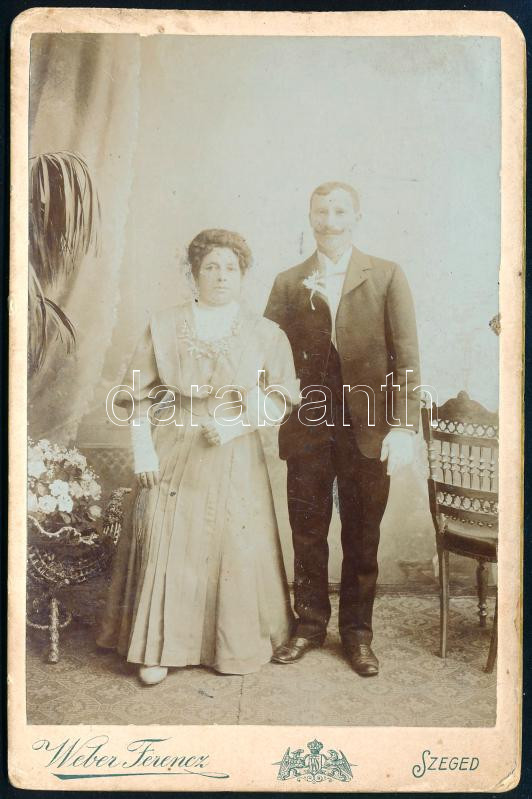 cca 1900 Házaspár műtermi portréja, keményhátú fotó Weber Ferenc szege... https://www.darabanth.com/de/450-Fernauktion/450.0/Fotografie/Foto~500017/cca-1900-Hazaspar-mutermi-portreja-kemenyhatu-foto-Weber-Ferenc-szegedi-mutermebol-16C397~II2989660